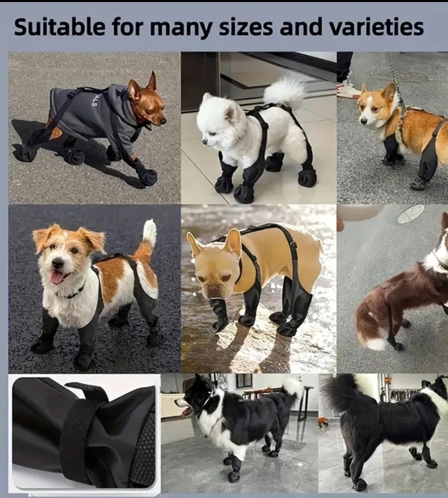 Botas Antiderrapantes para Cães de Estimação com Tiras Ajustáveis - Fáceis de Limpar, Quentes e Resistentes à Sujidade, Adequadas para Cães de Pequeno a Grande Porte, /, Fecho de Botão, Tecido Durável para Passeios ao Ar Livre